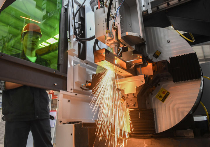 在位于湖北武漢“中國光谷”的華工科技產(chǎn)業(yè)股份有限公司連續(xù)取得關鍵核心技術突破,實現(xiàn)高性能三維五軸激光切割機完全國產(chǎn)化。(視頻截圖)