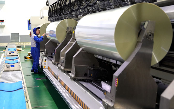 位于遼寧營口仙人島經(jīng)濟開發(fā)區(qū)的康輝新材料科技有限公司工人在生產(chǎn)車間查看產(chǎn)品(6月13日攝)。新華社記者 章磊 攝