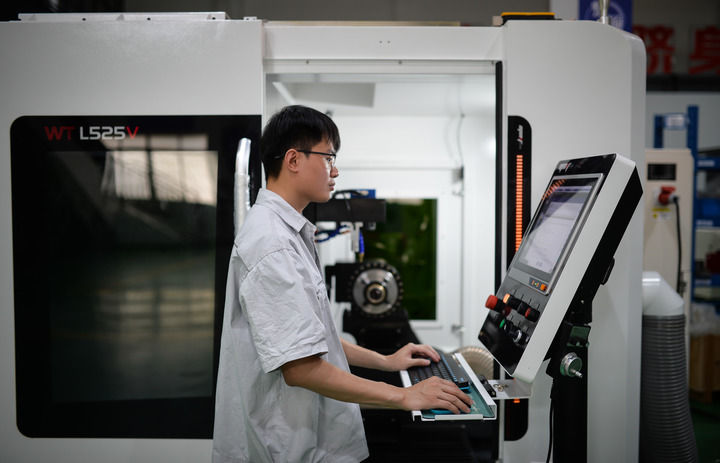 員工在位于廣東省佛山市的原點智能技術(shù)有限公司車間操作數(shù)控機床(5月16日攝)。新華社記者 李任滋 攝