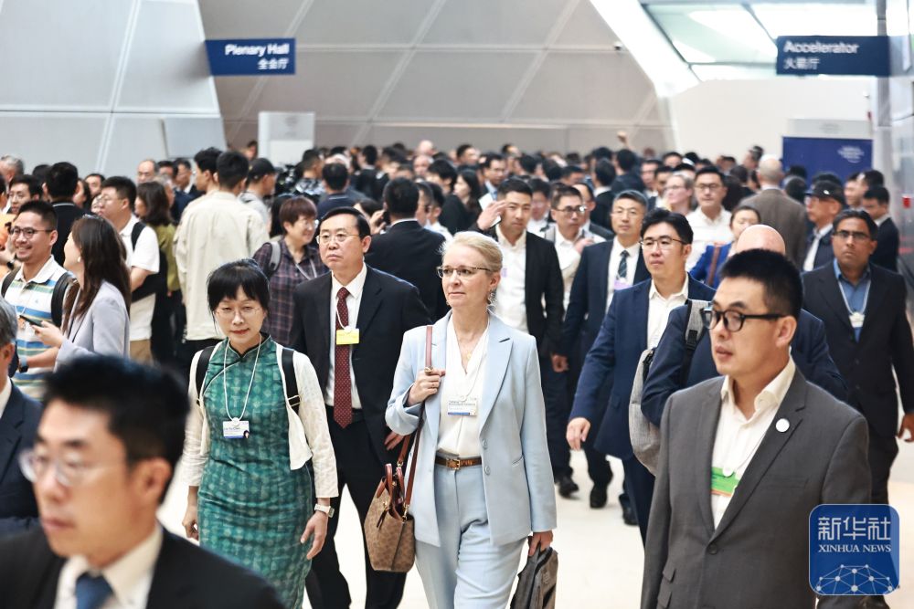 ↑ 這是6月25日拍攝的夏季達(dá)沃斯論壇開(kāi)幕式現(xiàn)場(chǎng)。