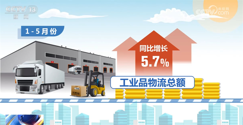 從需求結(jié)構(gòu)來看,1—5月份,工業(yè)品物流總額同比增長5.7%,其中,工業(yè)品制造物流總額增速達到6.1%,顯示當前制造物流仍是支撐工業(yè)品物流穩(wěn)定恢復的重要力量。