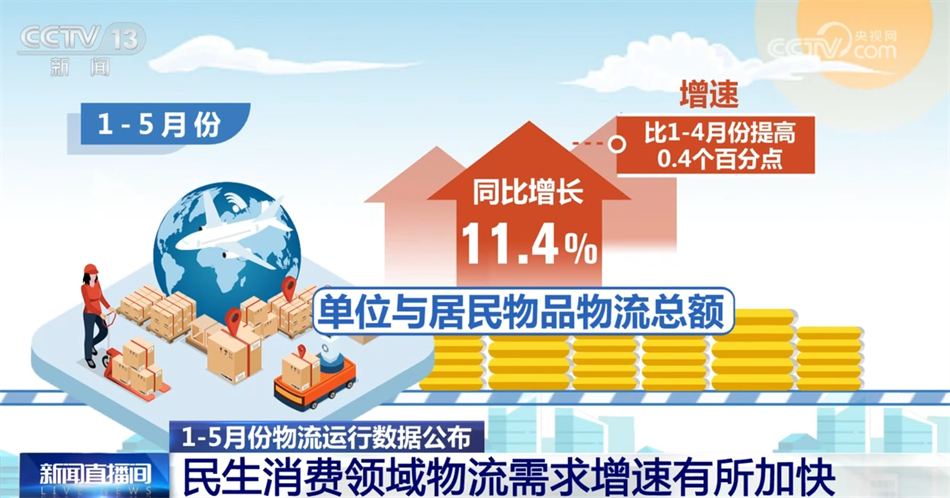 中國物流信息中心主任劉宇航表示,從1—5月我國社會物流運行情況來看,總體還是保持穩(wěn)中向好。從消費的情況來看,5月份以來整個消費活力比較強,消費增速比較明顯。