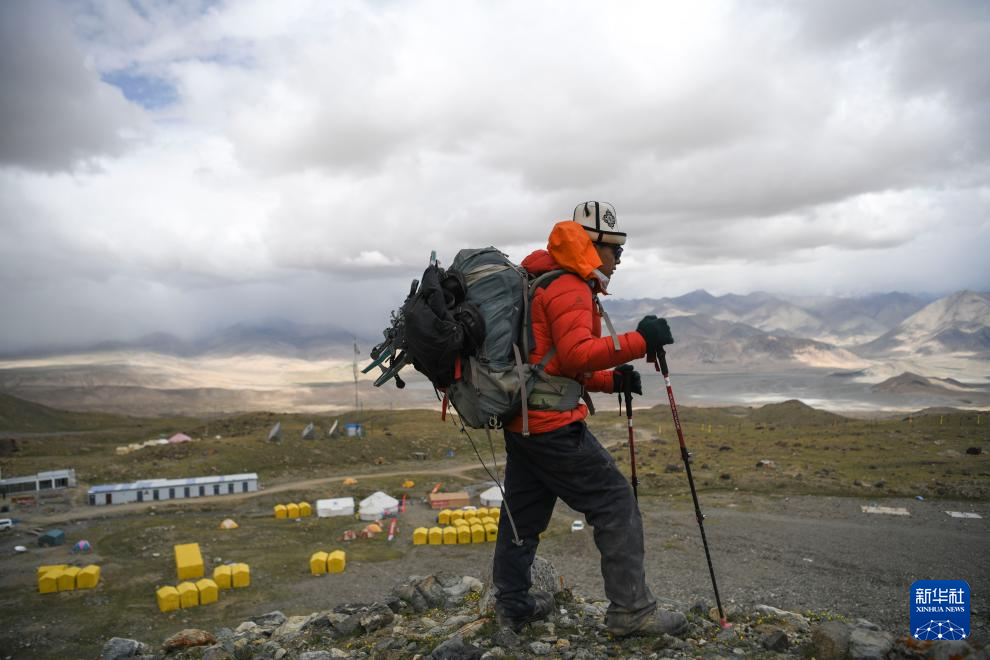7月5日,完成一次海拔約5670米的慕士塔格峰C1營地物品轉(zhuǎn)運(yùn)后,塔西巴伊在下山途中。新華社記者 胡虎虎 攝