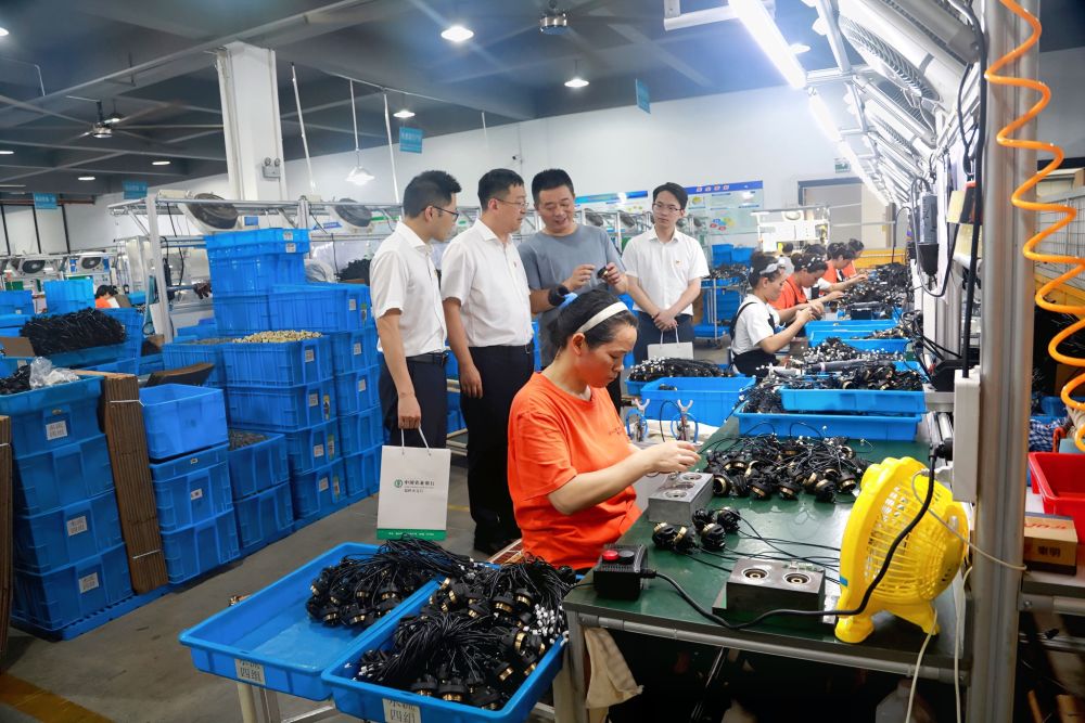 7月12日,在位于浙江溫嶺的愛科賽智能科技公司,農(nóng)行溫嶺支行工作人員開展金融問需服務(wù)。新華社發(fā)(程蘊(yùn) 攝)