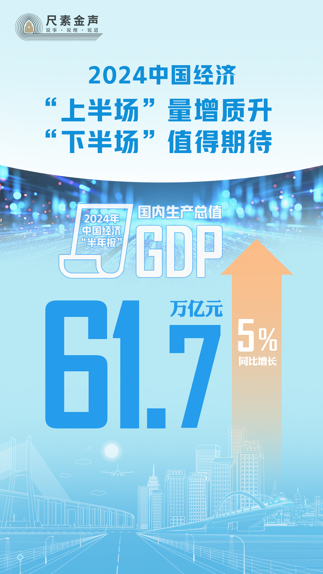 正在北京舉行的黨的二十屆三中全會,將重點研究進一步全面深化改革、推進中國式現(xiàn)代化。改革的“時代新篇”萬眾矚目,中國的發(fā)展也令人高度關(guān)注——同日,國家統(tǒng)計局發(fā)布2024年中國經(jīng)濟“半年報”:國內(nèi)生產(chǎn)總值(GDP)61.7萬億元,同比增長5%。結(jié)合二季度國內(nèi)外形勢,預(yù)計上半年中國經(jīng)濟增速仍將保持領(lǐng)先,仍是世界經(jīng)濟增長的重要引擎和穩(wěn)定力量。