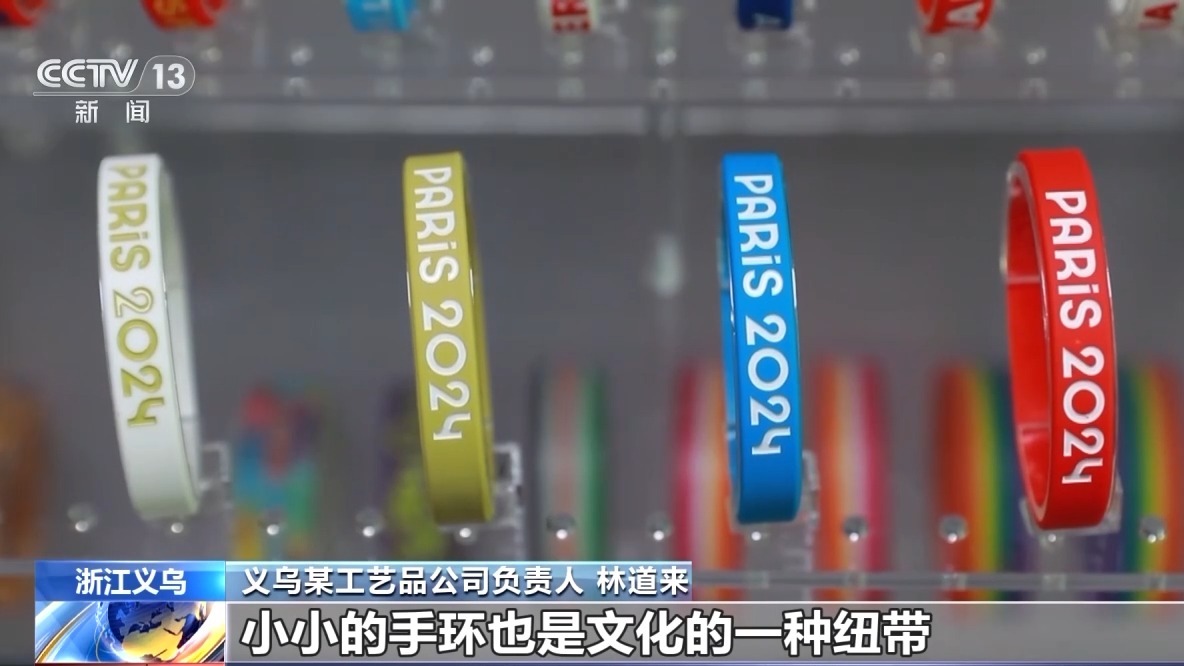隨著巴黎奧運會的臨近,由義烏一家工藝品公司生產(chǎn)的100萬個巴黎奧運會官方手環(huán)將亮相巴黎。小小的奧運手環(huán),既是世界生意,更是文化紐帶。