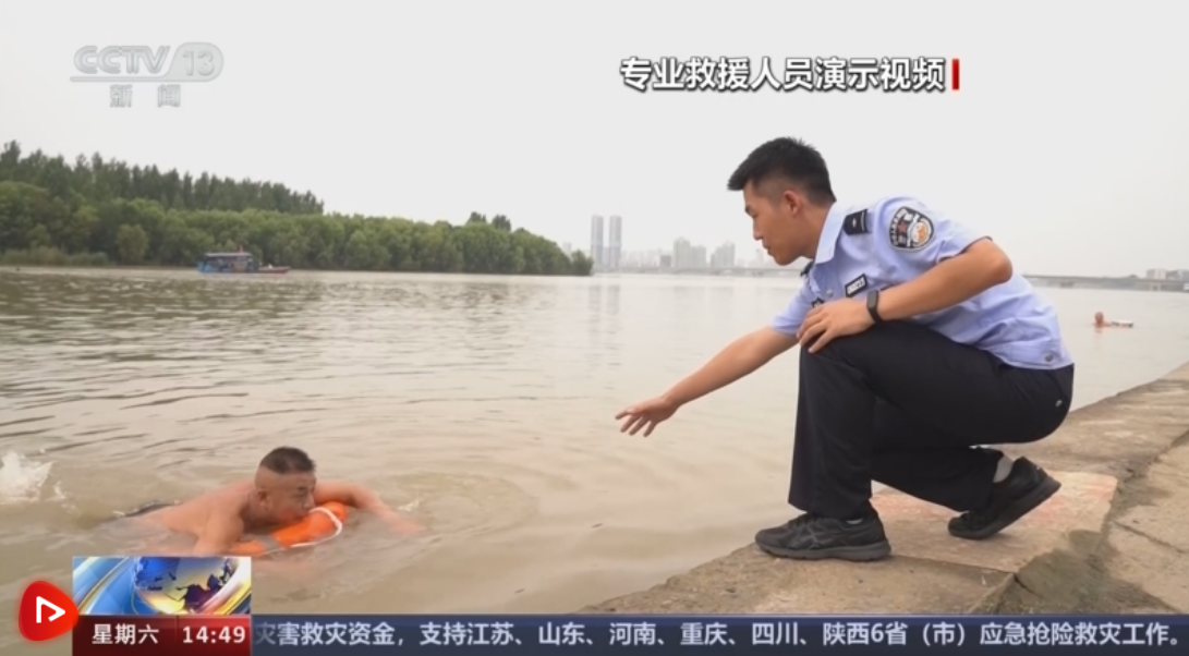 襄陽(yáng)市襄城區(qū)公安分局民警高培龍介紹,大家如果發(fā)現(xiàn)有人落水,不要盲目施救,首先尋找救生衣、救生圈進(jìn)行施救,千萬不要手拉手地施救,防治一起溺水??梢缘桨哆厡ふ议L(zhǎng)竹竿,將溺水者拖上岸。
