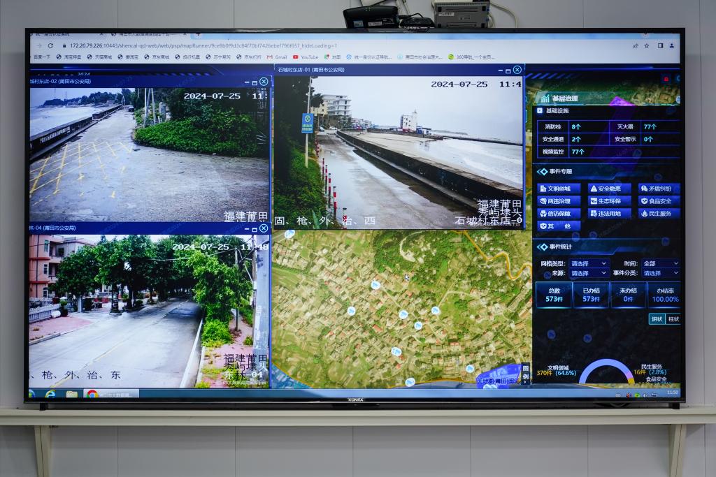 25日中午,莆田市秀嶼區(qū)埭頭鎮(zhèn)石城村數(shù)字平臺顯示的實時視頻信息。肖和勇 攝