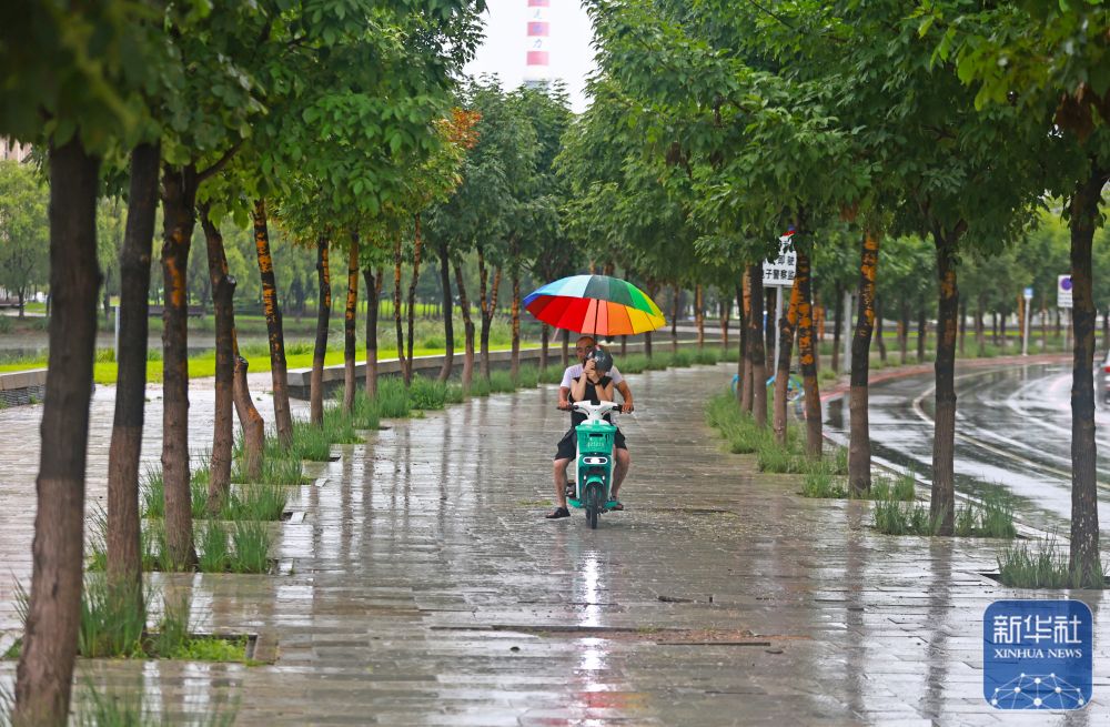 7月28日,在遼寧省沈陽(yáng)市和平區(qū),市民在雨中出行?! ⌒氯A社記者 楊青 攝