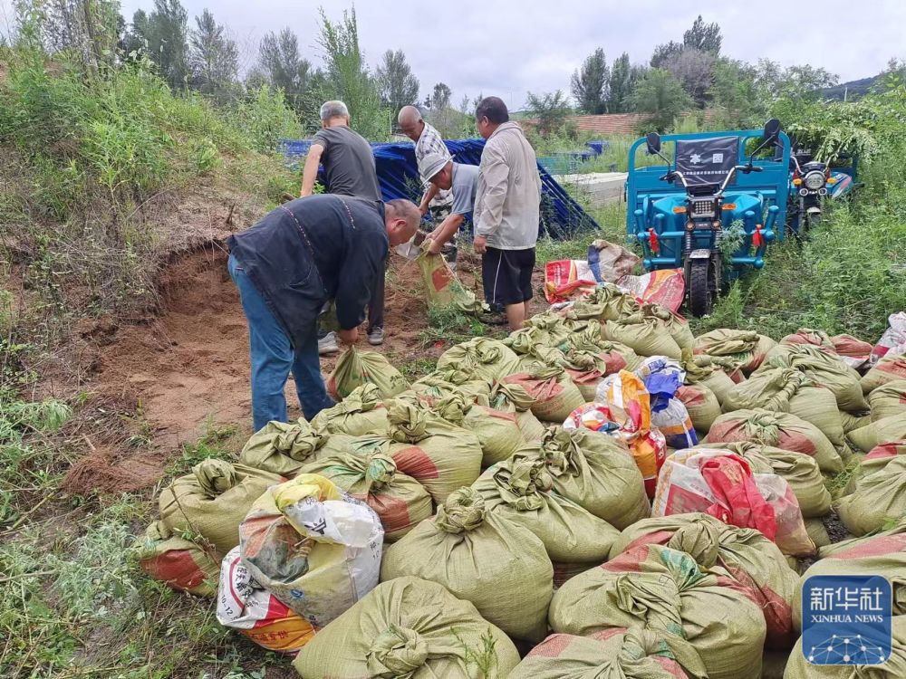 7月27日,遼寧省鐵嶺縣平頂堡鎮(zhèn)組織各村緊急裝運(yùn)沙袋,全鎮(zhèn)共準(zhǔn)備5000個(gè)沙袋迎戰(zhàn)強(qiáng)降雨?! ⌒氯A社發(fā)