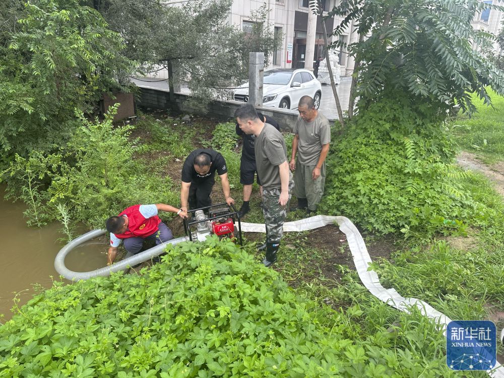 7月28日,鐵嶺市昌圖縣昌圖鎮(zhèn)八家子村組織黨員干部來(lái)到低洼耕地進(jìn)行排水,減少農(nóng)田內(nèi)澇?! ⌒氯A社發(fā)
