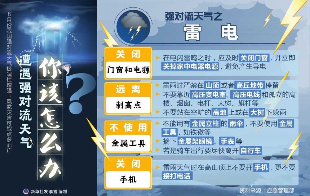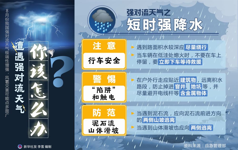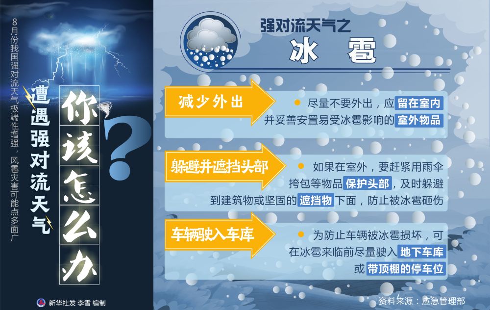 從應(yīng)急管理部獲悉,多方會商研判認(rèn)為,8月份中國強(qiáng)對流天氣極端性增強(qiáng),風(fēng)雹災(zāi)害可能點多面廣。遭遇強(qiáng)對流天氣,你該怎么辦?