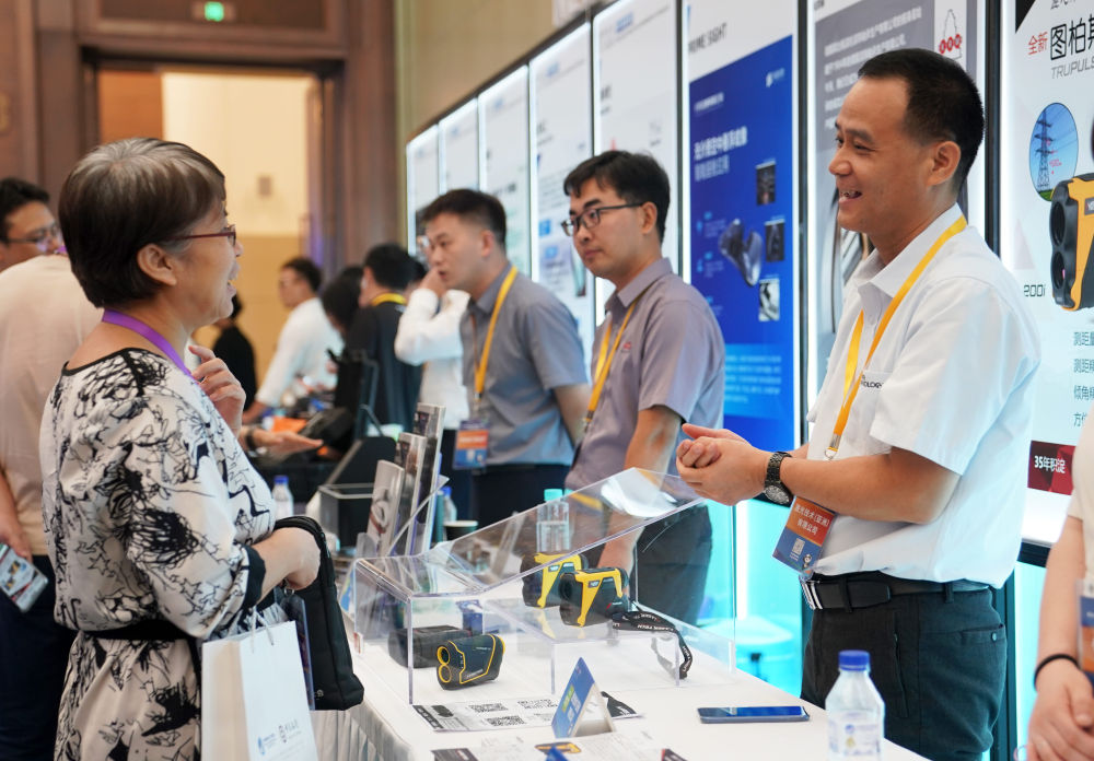 在第七屆進(jìn)博會技術(shù)裝備、汽車展區(qū)展前供需對接會現(xiàn)場,展商工作人員(右)向采購商介紹企業(yè)產(chǎn)品(2024年8月8日攝)。新華社發(fā)(陳浩明 攝)