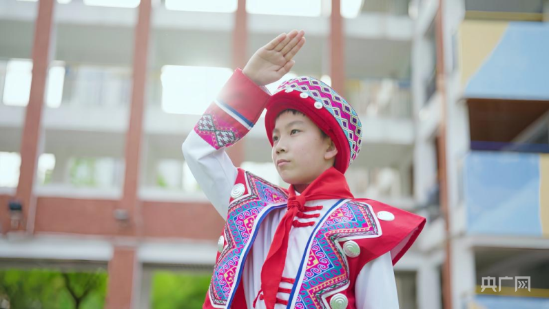周彥博的家鄉(xiāng)位于重慶市酉陽(yáng)土家族苗族自治縣。逢年過(guò)節(jié),他總會(huì)跟隨爸爸媽媽回鄉(xiāng)看望親人。不同民族、不同文化碰撞的魅力讓周彥博深受感觸?;氐綄W(xué)校,他利用課余時(shí)間,身著特色家鄉(xiāng)服飾,與同學(xué)分享自己回鄉(xiāng)的見(jiàn)聞,講述民族團(tuán)結(jié)的故事。