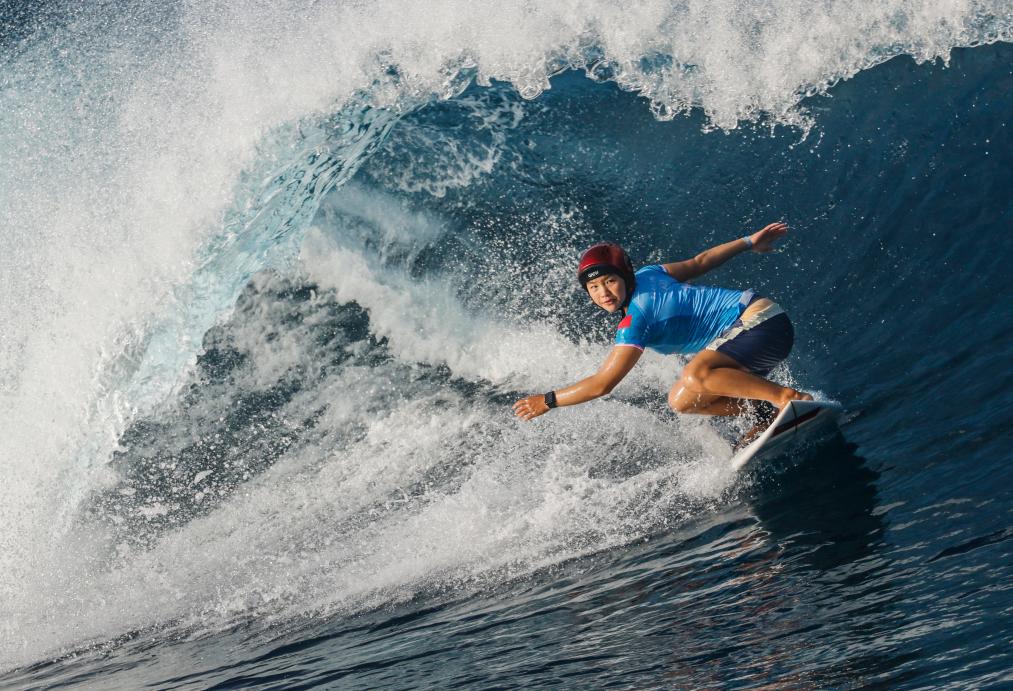 8月1日,中國選手楊思琪在巴黎奧運(yùn)會(huì)女子沖浪項(xiàng)目第三輪比賽中。新華社記者 馬平 攝