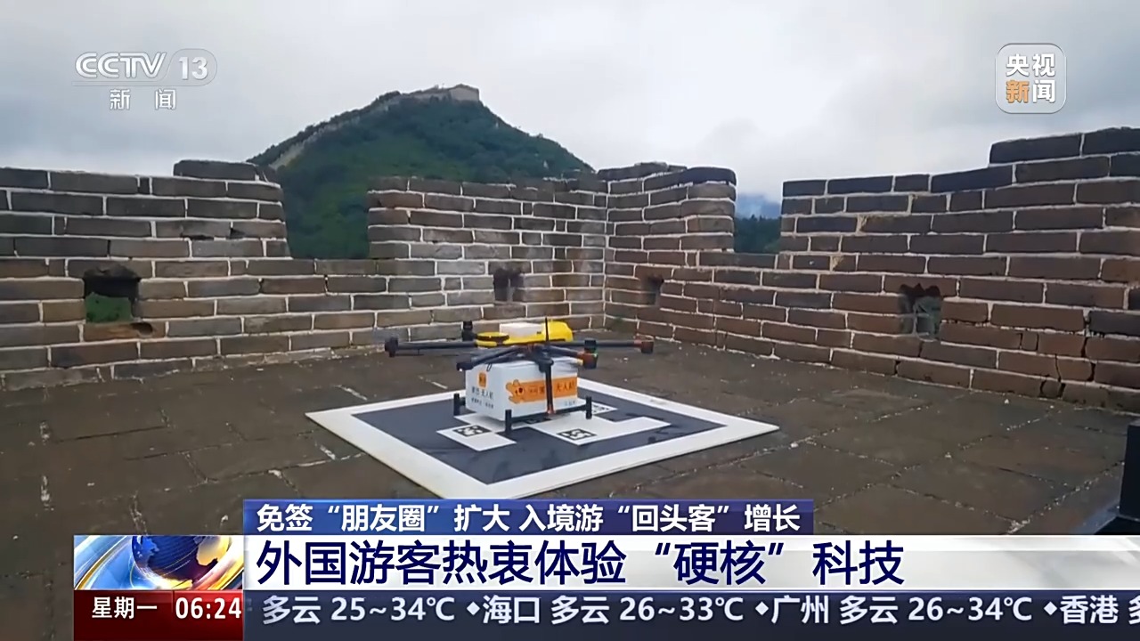 北京八達(dá)嶺長(zhǎng)城近期開通了無(wú)人機(jī)“送外賣”服務(wù),最快5分鐘,來(lái)自山下的酸梅湯、雪糕、創(chuàng)可貼等商品就能送到長(zhǎng)城上來(lái)。