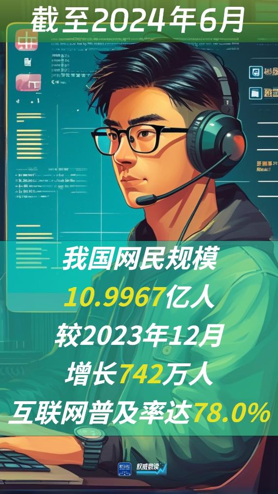 8月29日,中國互聯(lián)網(wǎng)絡(luò)信息中心(CNNIC)發(fā)布第54次《中國互聯(lián)網(wǎng)絡(luò)發(fā)展?fàn)顩r統(tǒng)計報告》。報告顯示,截至2024年6月,我國網(wǎng)民規(guī)模近11億人(10.9967億人),較2023年12月增長742萬人,互聯(lián)網(wǎng)普及率達78.0%。
