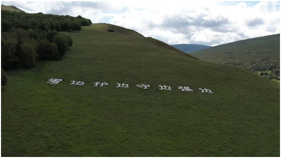 1984年7月,王玉發(fā)在阿爾山林業(yè)局林場工作期間,光榮地加入了中國共產(chǎn)黨。今年,王玉發(fā)迎來了加入中國共產(chǎn)黨的第40個年頭。為了慶祝這一特殊時刻,王玉發(fā)用1000余塊石磚堆砌出“愛民 護邊守邊 強邊”八個大字,成為山坡上一道壯觀的風景線。