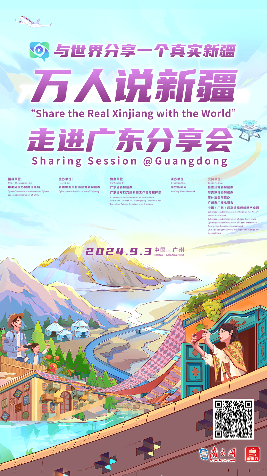 在交流互鑒中把新疆溫柔地說(shuō)與全世界,在新粵兩地合作中感悟跨“粵”千里的援疆故事?!叭f(wàn)人說(shuō)新疆”走進(jìn)廣東分享會(huì)將于9月2日至3日在廣州舉行。此次活動(dòng)由新疆維吾爾自治區(qū)黨委網(wǎng)信辦主辦,廣東省委網(wǎng)信辦、廣東省對(duì)口支援新疆工作前方指揮部協(xié)辦,南方新聞網(wǎng)承辦。分享會(huì)從國(guó)內(nèi)知名學(xué)者、外籍專家、海內(nèi)外博主、援疆干部、港澳青年等不同視角,講述有溫度、有情懷、接地氣的美好新疆故事。