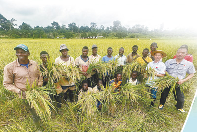 位于科特迪瓦迪沃省的格格杜墾區(qū)于1997年迎來(lái)第一批中國(guó)農(nóng)業(yè)技術(shù)合作組專(zhuān)家,經(jīng)過(guò)近30年的努力,墾區(qū)已成為中科兩國(guó)農(nóng)業(yè)合作示范基地和科特迪瓦全國(guó)聞名的水稻種植基地。圖為中國(guó)農(nóng)業(yè)專(zhuān)家與當(dāng)?shù)剞r(nóng)民在水稻田中慶祝豐收。