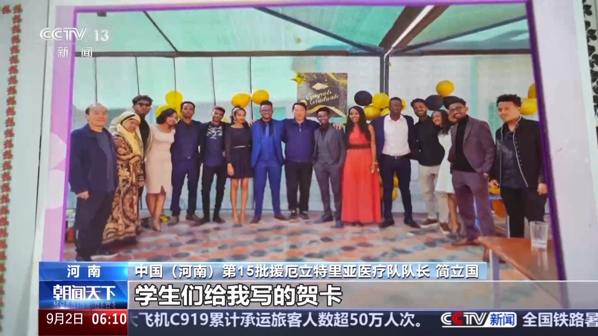 中國(河南)第15批援厄立特里亞醫(yī)療隊隊長 簡立國:這是我們醫(yī)療隊培養(yǎng)的16名醫(yī)學(xué)生,他們現(xiàn)在都成為厄立特里亞的中堅力量了。學(xué)生們給我寫的賀卡也是中厄友誼的見證。