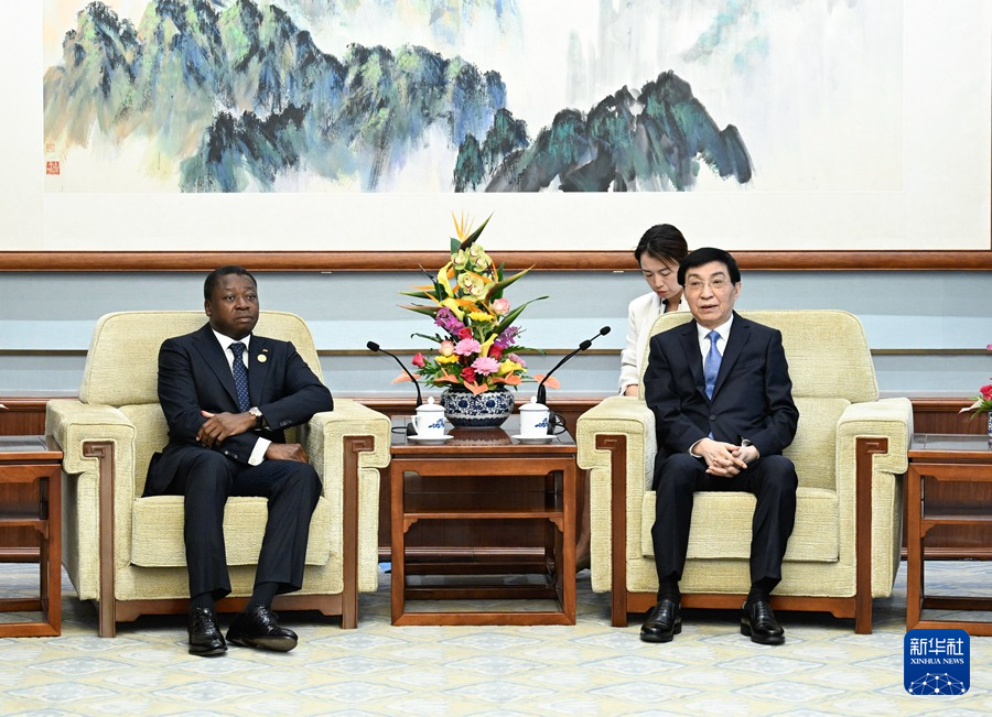 9月2日,全國(guó)政協(xié)主席王滬寧在北京會(huì)見來華出席中非合作論壇北京峰會(huì)的多哥總統(tǒng)福雷。新華社記者 申宏 攝