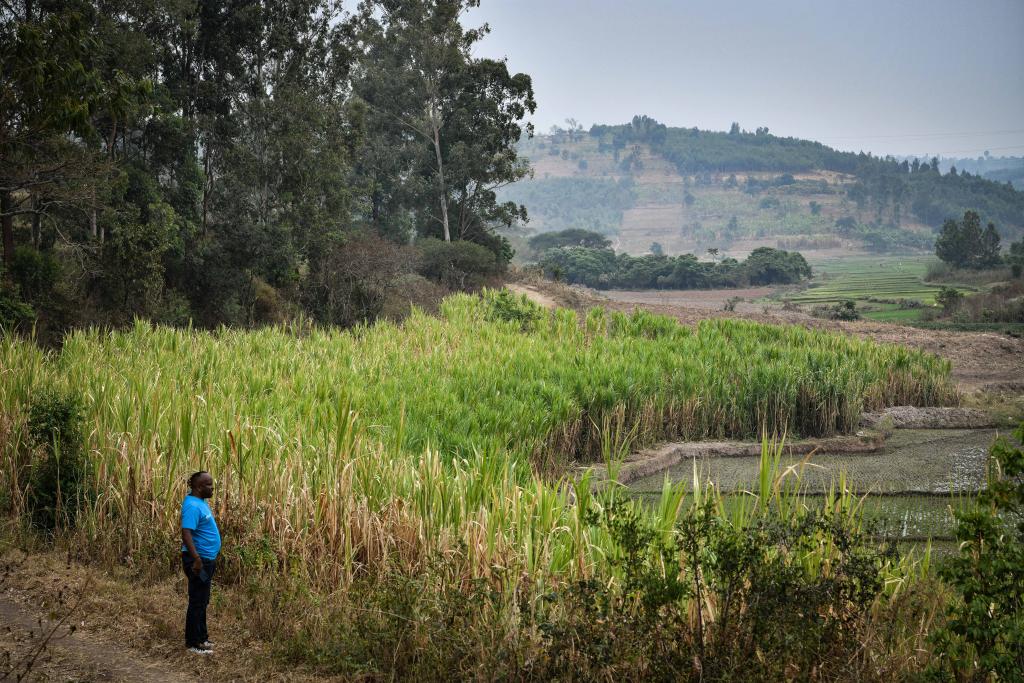 這是8月15日在盧旺達南方省胡耶區(qū)拍攝的菌草田。