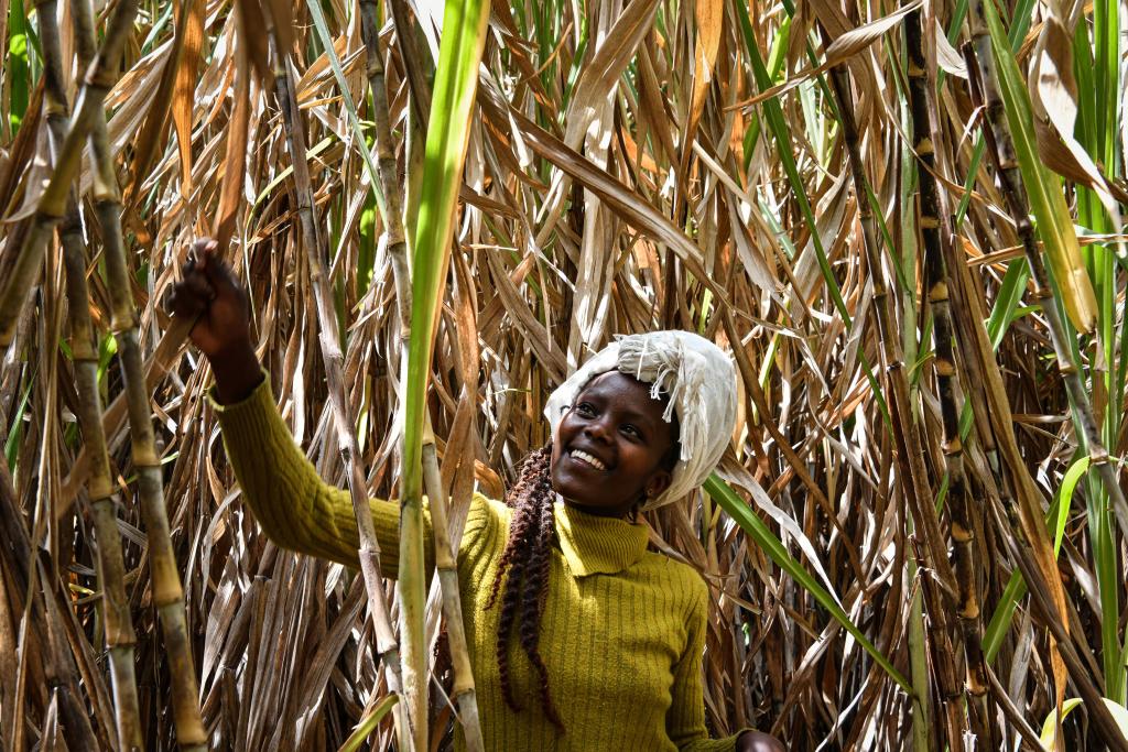 1月26日,當?shù)剞r民在肯尼亞納庫魯倫吉內特村的菌草農場除雜草。