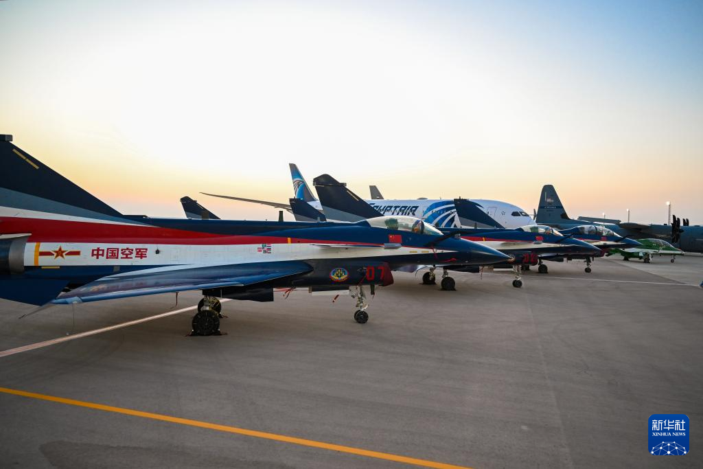 9月3日,在埃及阿拉曼開幕的首屆埃及航展上,中國空軍八一飛行表演隊殲-10表演機進行靜態(tài)展示。新華社發(fā)(周雪峰 攝)