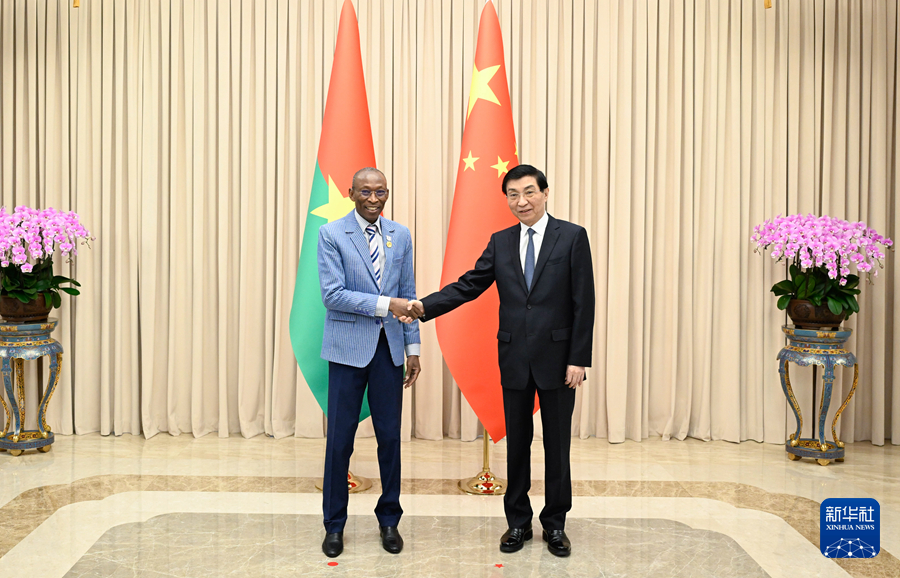 9月4日,全國政協(xié)主席王滬寧在北京會(huì)見來華出席中非合作論壇北京峰會(huì)的布基納法索總理基耶朗。新華社記者 申宏 攝