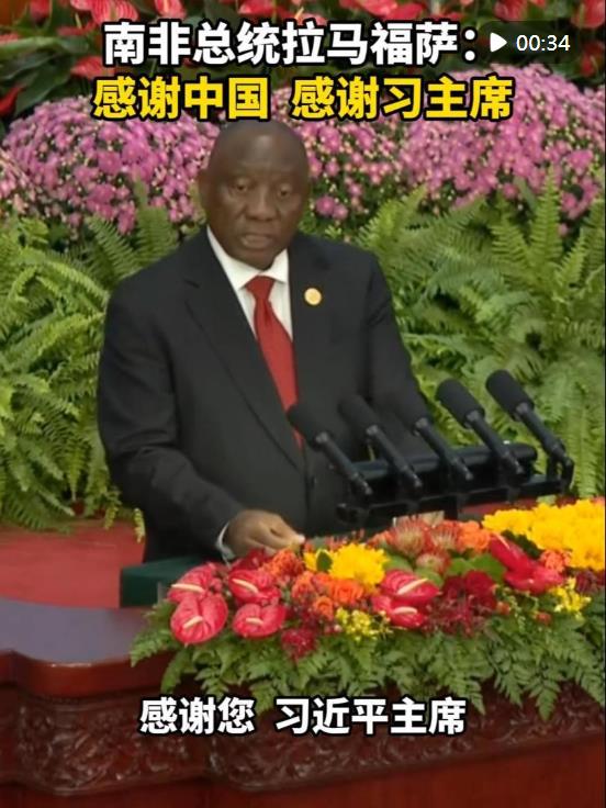 南非總統(tǒng)拉馬福薩5日在中非合作論壇北京峰會開幕式上說,中國與非洲人民的友誼和團結源遠流長。“我們感謝中國長期以來致力于與非洲大陸擴大合作、協(xié)同發(fā)展。感謝您,習近平主席。”