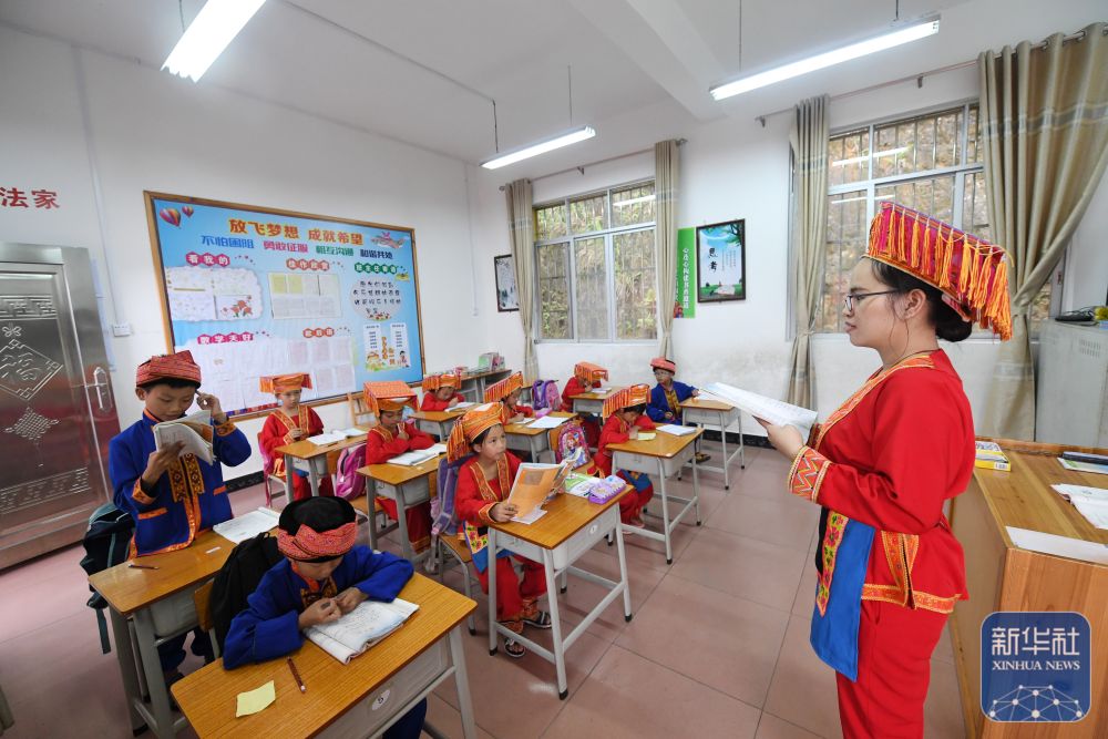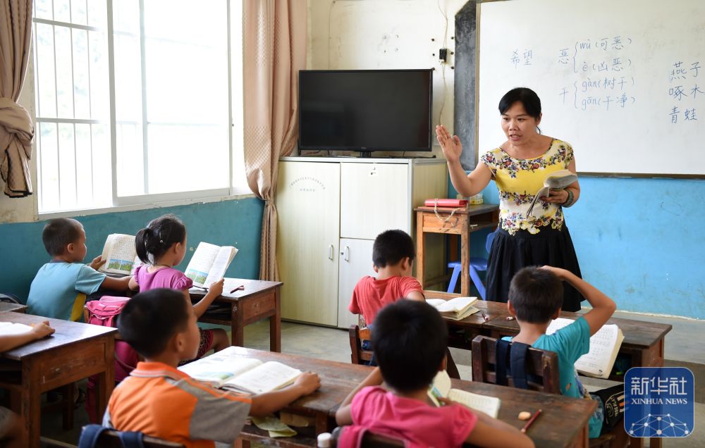 在廣西金秀瑤族自治縣忠良鄉(xiāng)更范教學點,“85后”老師盧秀芬在給學生上課(2019年6月5日攝)。