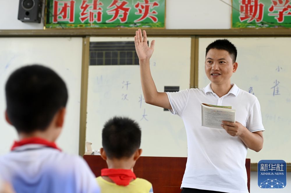 在廣西南寧市邕寧區(qū)中和鎮(zhèn)中心學校那才教學點,“85后”老師滕永社在給學生上課(9月5日攝)。