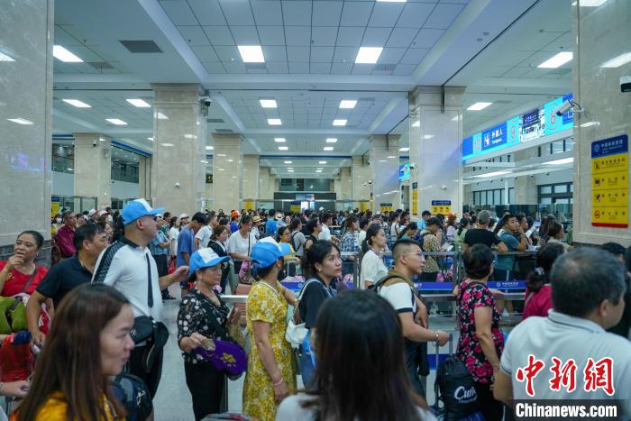 8月31日,旅客在中越邊境河口口岸排隊(duì)辦理通關(guān)手續(xù)。(河口出入境邊防檢查站供圖)
