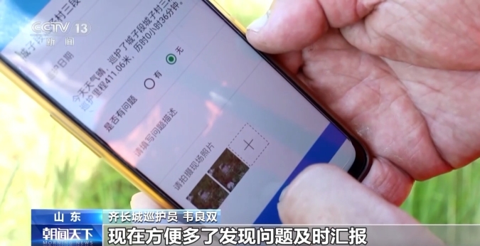 不只新材料,近年來山東出臺(tái)《山東省齊長(zhǎng)城保護(hù)條例》,依據(jù)齊長(zhǎng)城在沿線7座城市的長(zhǎng)度和巡護(hù)任務(wù)量,共設(shè)置了860名公益巡護(hù)員,每天一次對(duì)齊長(zhǎng)城進(jìn)行巡護(hù)。在齊長(zhǎng)城淄博段,記者看到,現(xiàn)在巡護(hù)員們還有了“智慧幫手”。