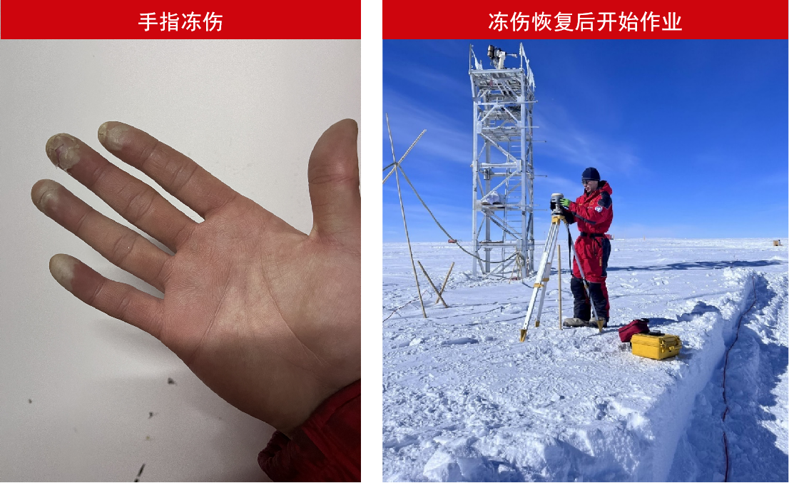 真正到了南極,他也親身體會(huì)了這些生死挑戰(zhàn)。在剛剛抵達(dá)昆侖站開展作業(yè)的過程中,因?yàn)樾枰c(diǎn)觸手機(jī)屏幕,不能穿戴厚手套,超過零下30度的極寒凍傷了他的手指,隨隊(duì)醫(yī)生診斷說再嚴(yán)重下去可能會(huì)有截肢的風(fēng)險(xiǎn)。“我難道我就這樣無法完成這次的任務(wù)了嗎?”在耿通強(qiáng)烈地請求下,醫(yī)生為他做了引流治療,傷情才得以好轉(zhuǎn)。而他也未等手指恢復(fù),便投入到緊張的科研工作中。
