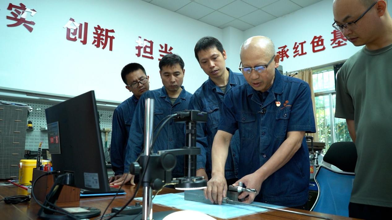 2014年,江麓集團成立了以羅軍名字命名的創(chuàng)新工作室,作為關(guān)鍵技術(shù)帶頭人,羅軍言傳身教,發(fā)揮傳幫帶的作用,培養(yǎng)了一批在省市技能大賽中脫穎而出的優(yōu)秀數(shù)控技能人才?!澳壳拔覀兊膭?chuàng)新團隊有12人,分別來自技術(shù)、數(shù)控加工、維修等不同崗位。部分成員獲得了全國勞模、全國五一勞動獎章、全國技術(shù)能手、杰出工匠等榮譽。”