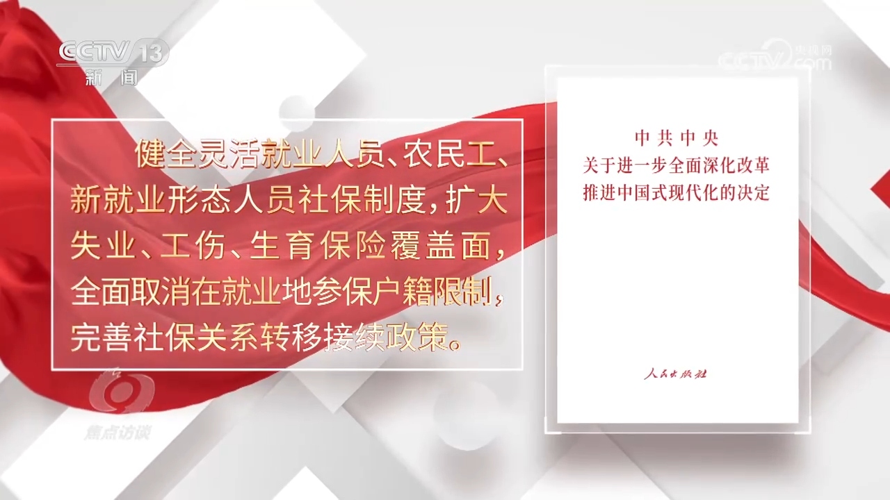 今天節(jié)目繼續(xù)聚焦“開(kāi)辟中國(guó)式現(xiàn)代化廣闊前景”。我們的目標(biāo)很宏偉,也很樸素,歸根結(jié)底就是讓人民過(guò)上更好的日子。習(xí)近平總書記說(shuō),孩子的撫養(yǎng)教育,年輕人的就業(yè)成才,老年人的就醫(yī)養(yǎng)老,是家事也是國(guó)事。的確,中國(guó)式現(xiàn)代化民生為大。黨和國(guó)家是把這些事放在心上的。黨的十八大以來(lái),我國(guó)建成世界上規(guī)模最大的醫(yī)療衛(wèi)生體系,全國(guó)各級(jí)教育普及程度達(dá)到或超過(guò)中高收入國(guó)家平均水平,建成世界上規(guī)模最大的社會(huì)保障網(wǎng)。面對(duì)新形勢(shì)新挑戰(zhàn),社會(huì)保障也在不斷調(diào)整,發(fā)揮兜底作用。黨的二十屆三中全會(huì)圍繞“健全保障和改善民生制度體系”作出一系列重要改革部署,提出健全靈活就業(yè)人員、農(nóng)民工、新就業(yè)形態(tài)人員社保制度。這就要求面對(duì)新情況新問(wèn)題,不斷探索完善符合人民群眾需要的社保體系。現(xiàn)在,這項(xiàng)工作在全國(guó)多個(gè)試點(diǎn)已經(jīng)取得了成效。