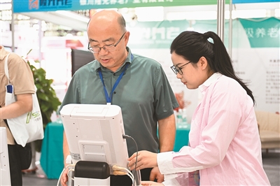 2024寧夏養(yǎng)老服務業(yè)博覽會近日在寧夏銀川市舉辦。本屆博覽會集中展示國內外養(yǎng)老服務前沿科技和最新成果,推動健康養(yǎng)老產(chǎn)業(yè)向更深層次、更寬領域、更全方位發(fā)展。圖為會上工作人員向參觀者介紹醫(yī)療產(chǎn)品。新華社記者 毛 竹攝