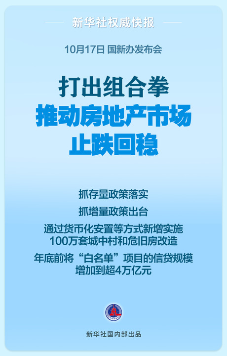 17日,國新辦發(fā)布會引起市場高度關(guān)注。住房城鄉(xiāng)建設(shè)部、財政部、自然資源部、中國人民銀行、國家金融監(jiān)督管理總局五部門有關(guān)負(fù)責(zé)人齊亮相,推出增量舉措,落實存量政策,打出一套組合拳,推動房地產(chǎn)市場止跌回穩(wěn)。