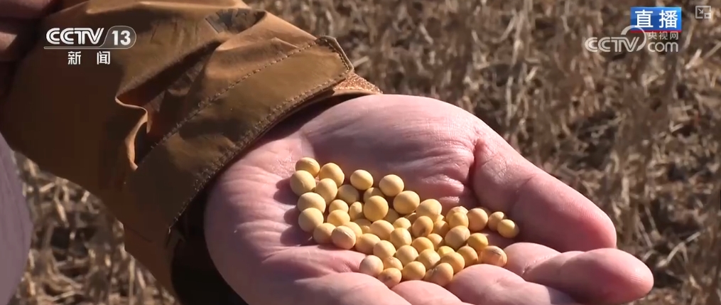 這片地里正在收獲的就是蛋白豆,從春天播種時,農(nóng)業(yè)專家和科研團隊就深入到大豆主產(chǎn)區(qū),為農(nóng)戶們帶來了多年通過實驗篩選的優(yōu)質(zhì)品種。這些種子是從幾十個品種中選取出來的抗病蟲害、蛋白質(zhì)含量更高的優(yōu)良豆種。同時,通過實地種植測產(chǎn)試驗,專家們指導(dǎo)農(nóng)戶把每畝地里種植的大豆,從多年以來的8000株增加到1萬株。通過合理的種植布局和科學(xué)的田間管理,2024年的畝產(chǎn)可以達到450斤以上,比增密種植前畝產(chǎn)增收了五六十斤。