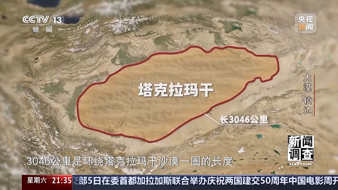2023年6月,習(xí)近平總書(shū)記在內(nèi)蒙古巴彥淖爾市主持召開(kāi)加強(qiáng)荒漠化綜合防治和推進(jìn)“三北”等重點(diǎn)生態(tài)工程建設(shè)座談會(huì),強(qiáng)調(diào)要打好河西走廊——塔克拉瑪干沙漠邊緣阻擊戰(zhàn)等三大戰(zhàn)役。3046公里,是環(huán)繞塔克拉瑪干沙漠一圈的長(zhǎng)度。過(guò)去40多年,依托“三北”防護(hù)林體系工程建設(shè),塔克拉瑪干沙漠周邊已形成長(zhǎng)達(dá)2761公里的綠色阻沙防護(hù)帶。截至2023年底,還剩285公里的空白區(qū)。塔克拉瑪干沙漠邊緣阻擊戰(zhàn)的首要任務(wù),就是要補(bǔ)齊缺口,給沙漠“鎖邊”。