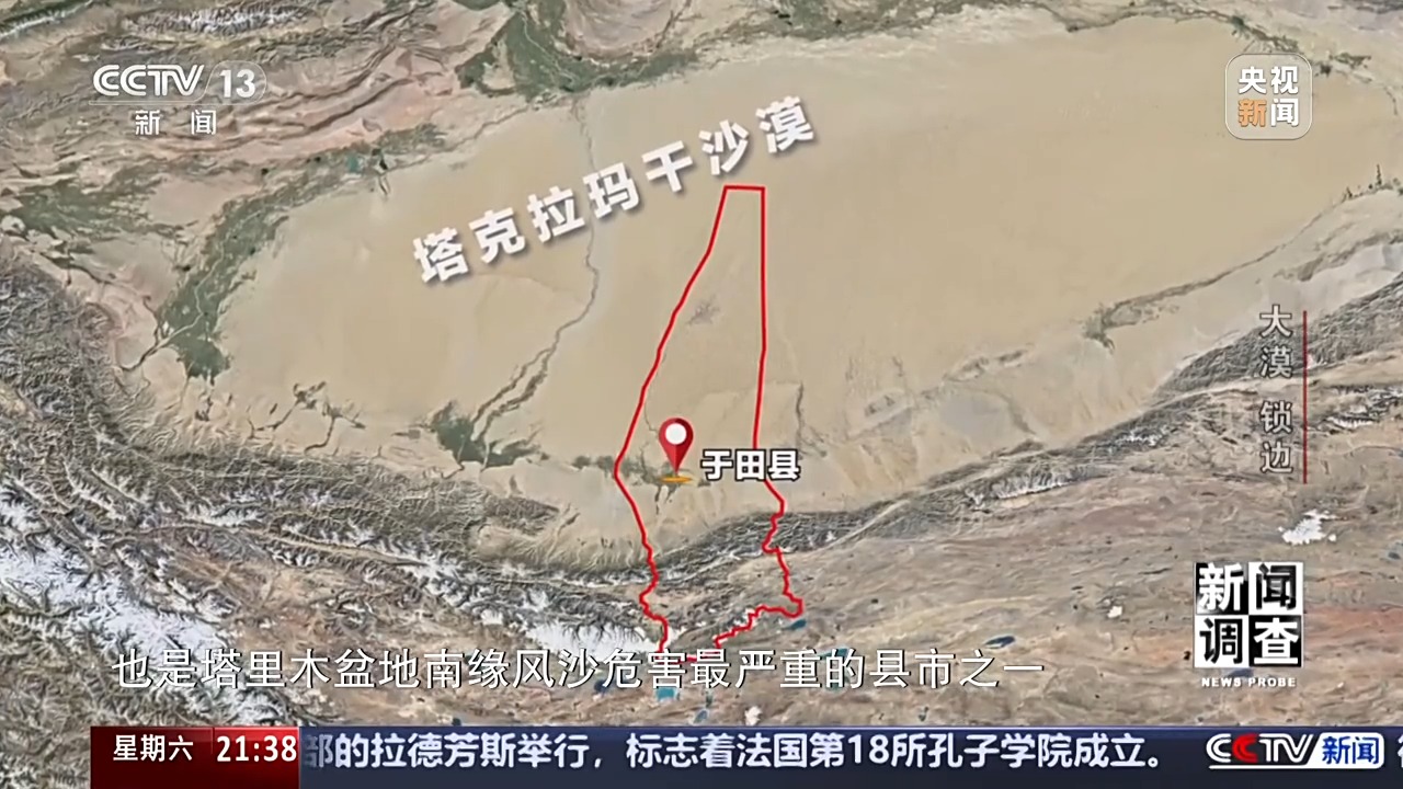 中國(guó)科學(xué)院新疆生態(tài)與地理研究所荒漠與綠洲生態(tài)國(guó)家重點(diǎn)實(shí)驗(yàn)室主任 陳亞寧:和田地區(qū)大概就是256萬(wàn)人,由于人均耕地面積少,經(jīng)濟(jì)發(fā)展相對(duì)也滯后。也是脫貧攻堅(jiān)成果鞏固和拓展難度最大的一個(gè)區(qū)域,所以在打好塔克拉瑪干沙漠邊緣阻擊戰(zhàn),對(duì)和田地區(qū)的經(jīng)濟(jì)社會(huì)發(fā)展、農(nóng)民增收是有著重要意義的。我們帶著隊(duì)伍進(jìn)行了將近兩個(gè)多月的實(shí)體調(diào)研,那我們調(diào)查什么呢?第一這里的地理環(huán)境、自然生態(tài)條件、水資源情況,同時(shí)我們也收集到他們當(dāng)?shù)剡@么多年防沙治沙的一些成功經(jīng)驗(yàn)和教訓(xùn),我們也進(jìn)行了訪談,結(jié)果我們就提出了一種從不同生態(tài)條件、不同沙害和不同水源條件下如何防沙治沙,實(shí)現(xiàn)沙漠鎖邊等一些建議、措施和總體規(guī)劃。