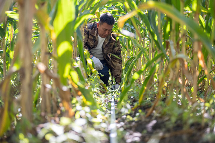 2024年9月24日,黑龍江省寶清縣農業(yè)技術推廣中心的農藝師在寶清縣青原鎮(zhèn)一片玉米地中測產。新華社記者 謝劍飛 攝