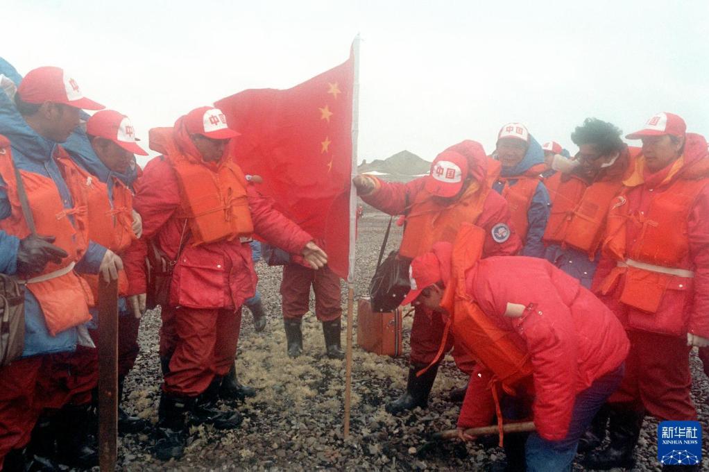 1984年12月30日,中國(guó)南極考察隊(duì)登陸成功后,在南極洲插上第一面五星紅旗。新華社記者 朱幼棣 攝