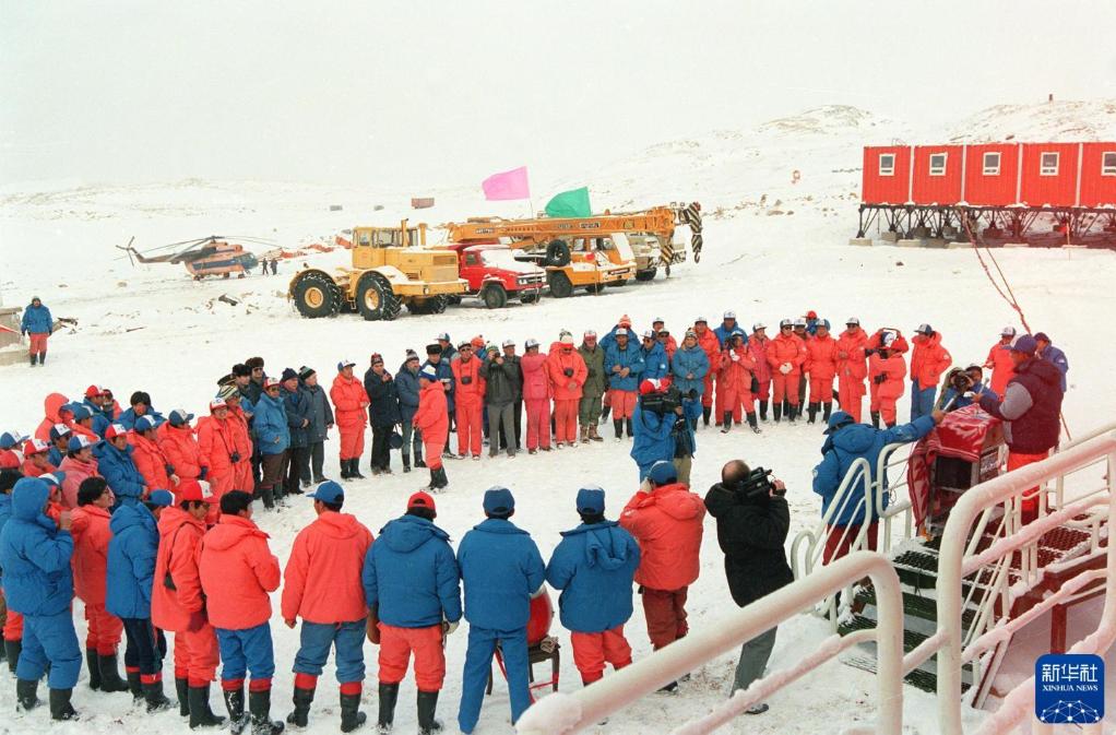 }1989年2月26日,中國(guó)南極考察隊(duì)員參加中山站落成典禮。新華社記者 張繼民 攝