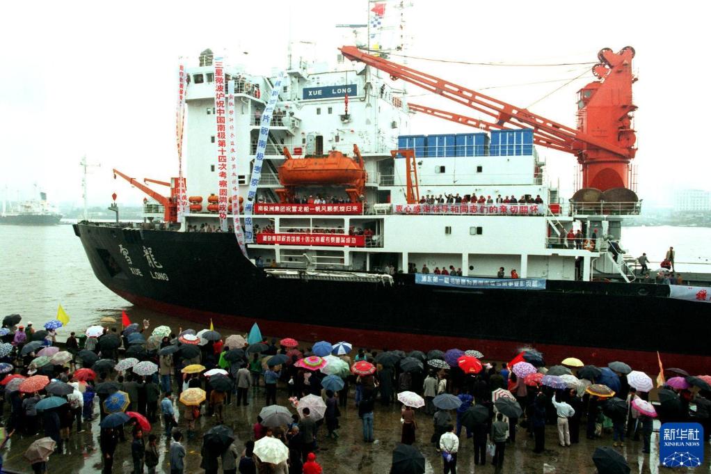 1997年11月15日,“雪龍”號(hào)載著100多名考察隊(duì)員從上海啟航,前往南極進(jìn)行第14次科學(xué)考察活動(dòng),同時(shí)為我國(guó)設(shè)在南極的“長(zhǎng)城”、“中山”兩個(gè)科學(xué)考察站運(yùn)送補(bǔ)充物資。新華社記者 張劉仁 攝