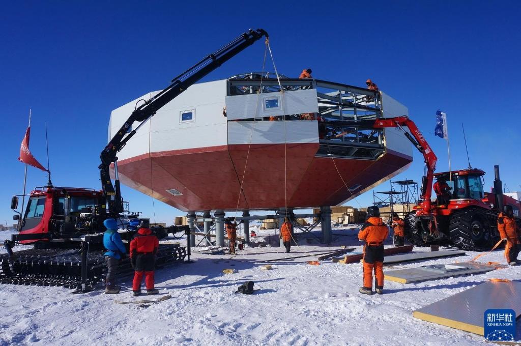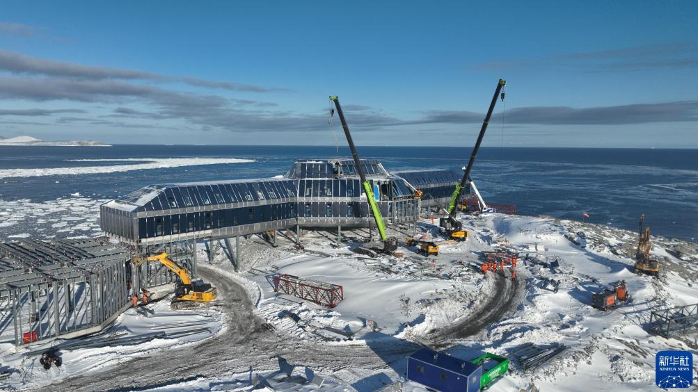 2024年1月25日拍攝的中國(guó)南極秦嶺站建設(shè)現(xiàn)場(chǎng)。新華社發(fā)(王海楠 攝)