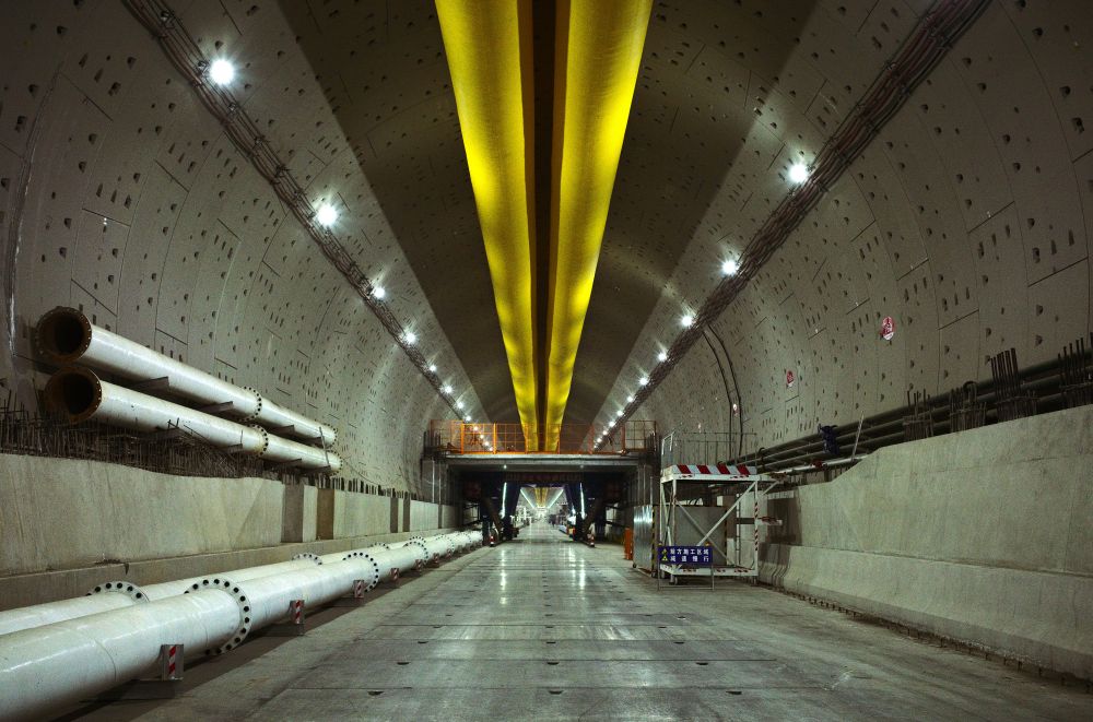 圖為濟南市黃崗路穿黃隧道施工現(xiàn)場。新華社記者張鐘仁 攝