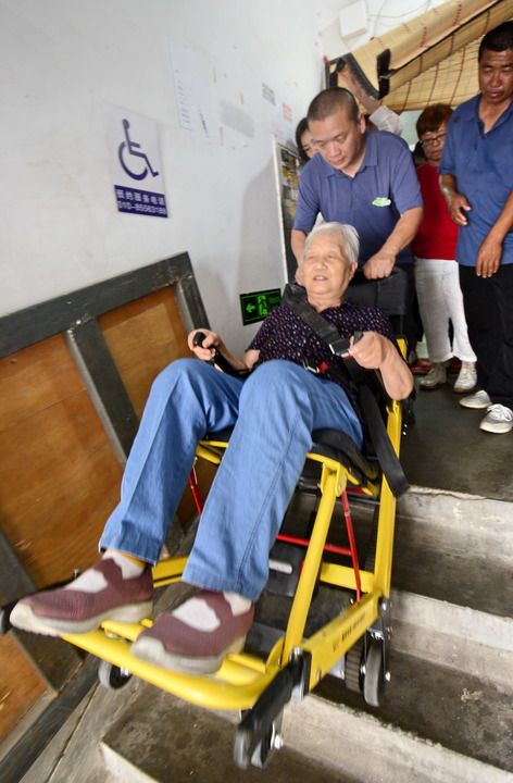 2024年7月11日,北京市朝陽區(qū)青年路社區(qū)一老舊小區(qū)居民在樓內(nèi)體驗“爬樓機(jī)”。新華社記者 李欣 攝